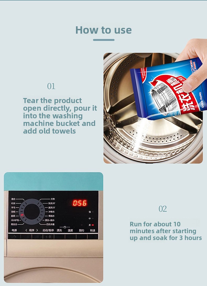 Deep Cleaning: Effectively removes mold, dirt, and scale from washing machine drums and tanks.