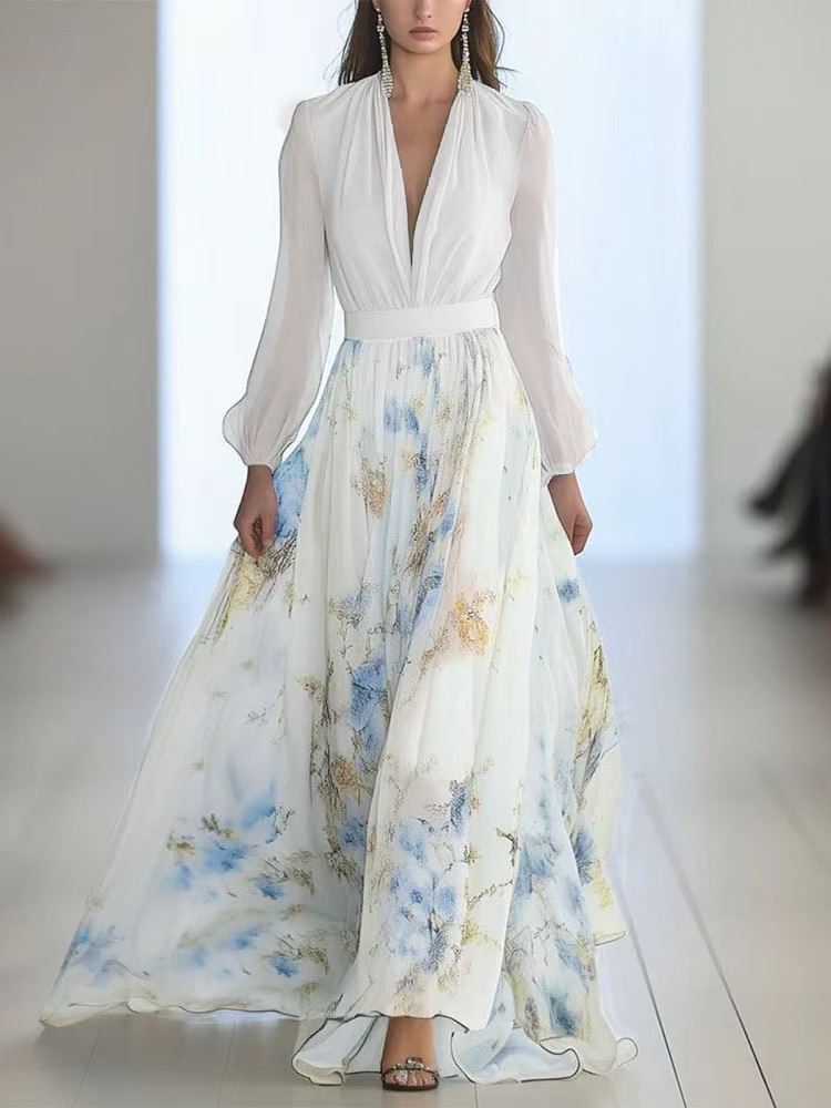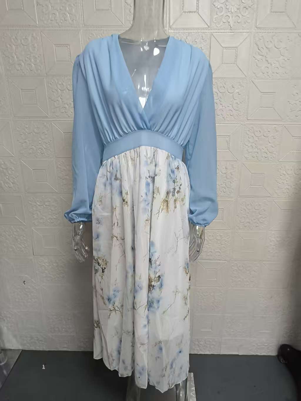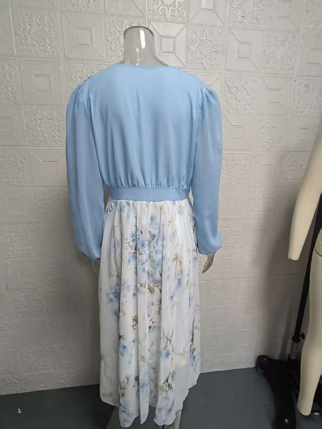 Style: Pullover, A-line skirt, V-neck, regular long sleeves, low waist
