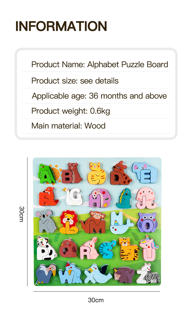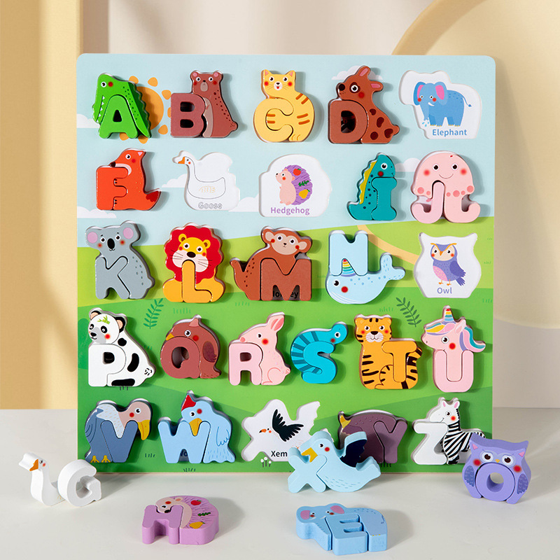 Interactive Design – Features 26 letter pieces with cartoon animal illustrations for engaging play.