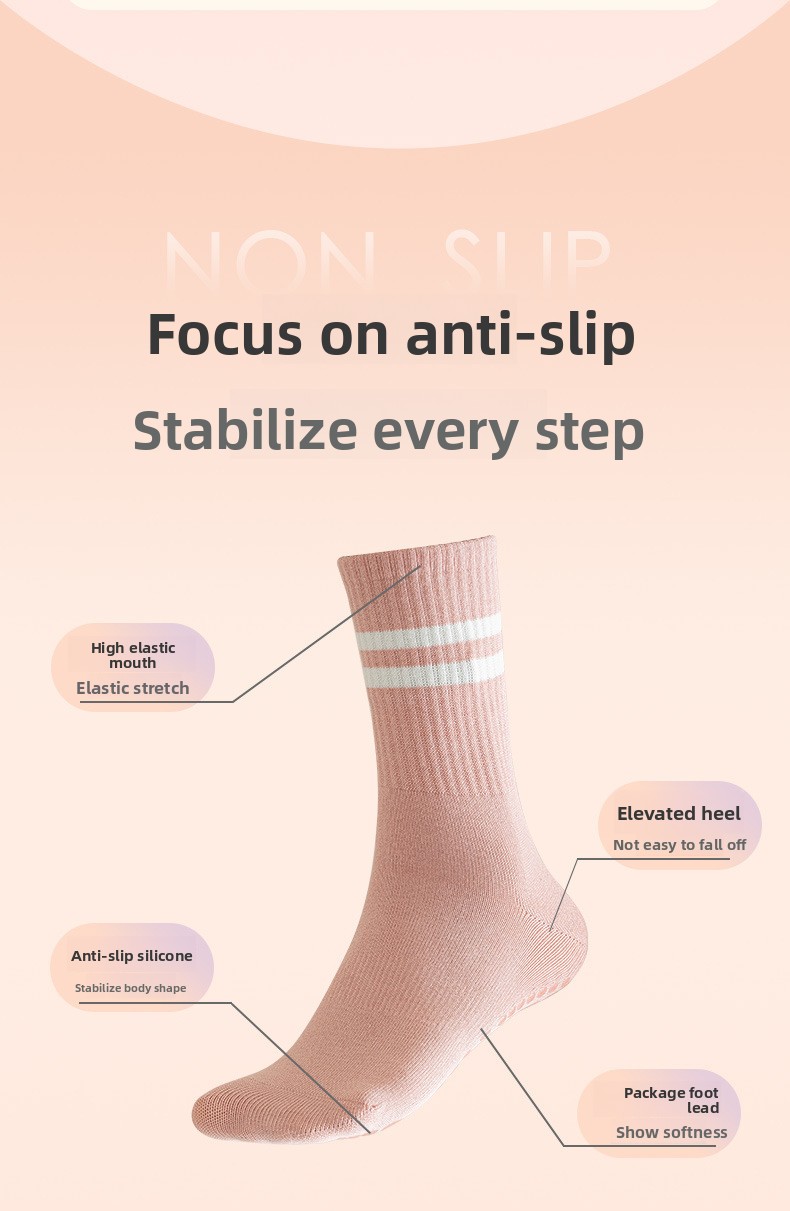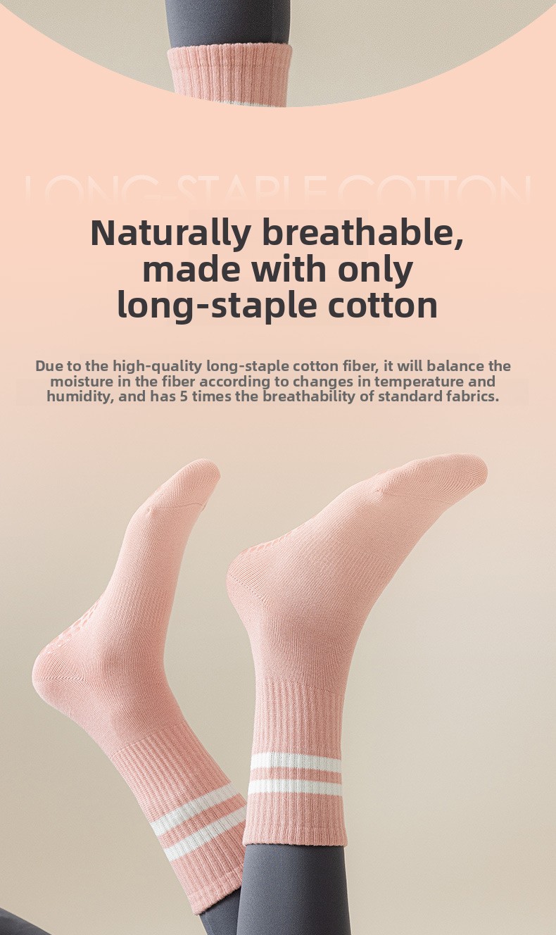 Non-Slip Grip: Features specialized anti-slip silicone dots on soles for secure traction during yoga and Pilates.
